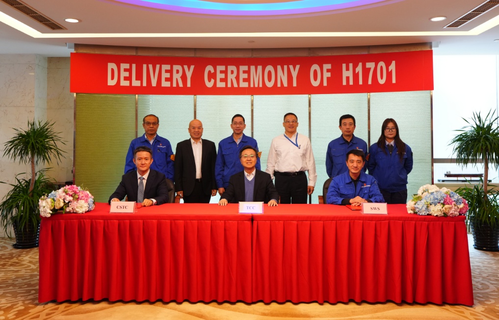 11月24日,公司为香港泰昌祥公司建造的11.4万吨阿芙拉型成品油轮“CSK JUBILEE(瑞庆)”轮签字交付,该船已于10月13日完成命名。香港泰昌祥公司、中国船舶工业贸易有限公司及外高桥造船相关代表出席并见证本次交船签字。